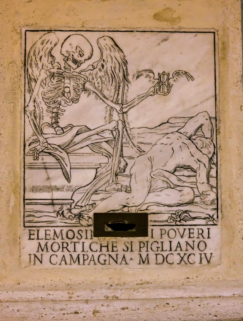 Reminders of mortality are all around you in Rome, such as on the Chiesa dell’Orazione e Morte, as seen on our Rome ghost tour